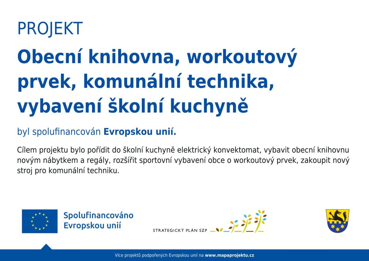 Projekt podpořený SZIF: Obecní knihovna, workoutový prvek, komunální technika, vybavení školní kuchyně