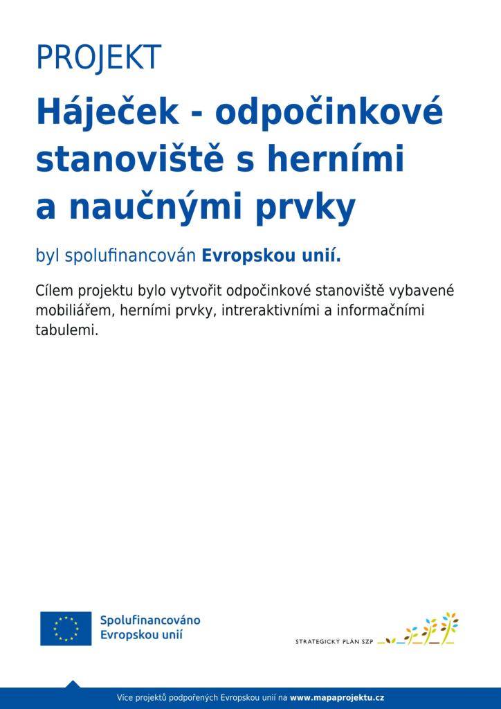 Projekt podpořený SZIF: Háječek - odpočinkové stanoviště s herními a naučnými prvky